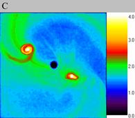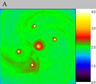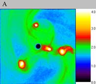 -0.5). Figure A shows particle density distribution for the moment