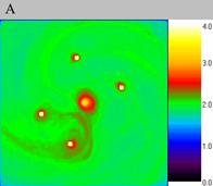 Figure A shows particle density distribution for the moment of time